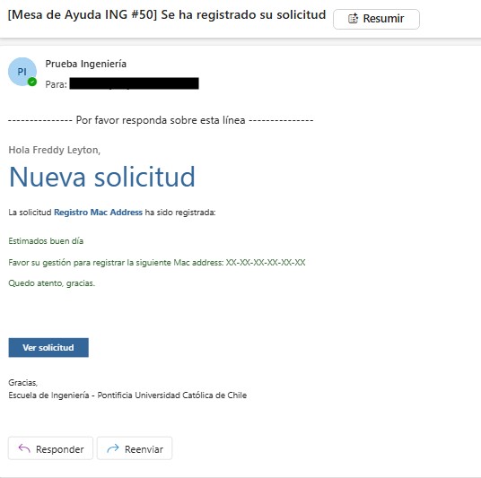 5. En este caso presionamos en “Continuar con la solicitud” ya que debemos realizar igualmente el registro de Mac Address. Eventualmente en otro caso, su requerimiento podría haber sido solucionado solo con la información de la Base de conocimiento.