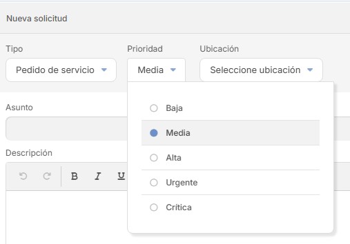 2. Se debe seleccionar “Prioridad”. En este caso le asignamos una prioridad Media, ya que no corresponde a un incidente o problema de carácter urgente.