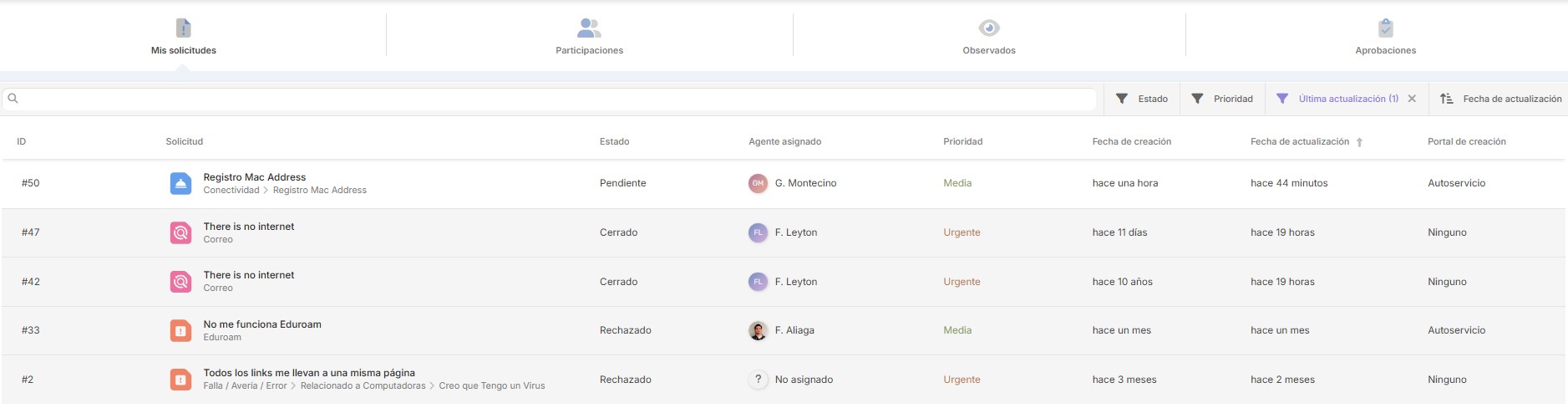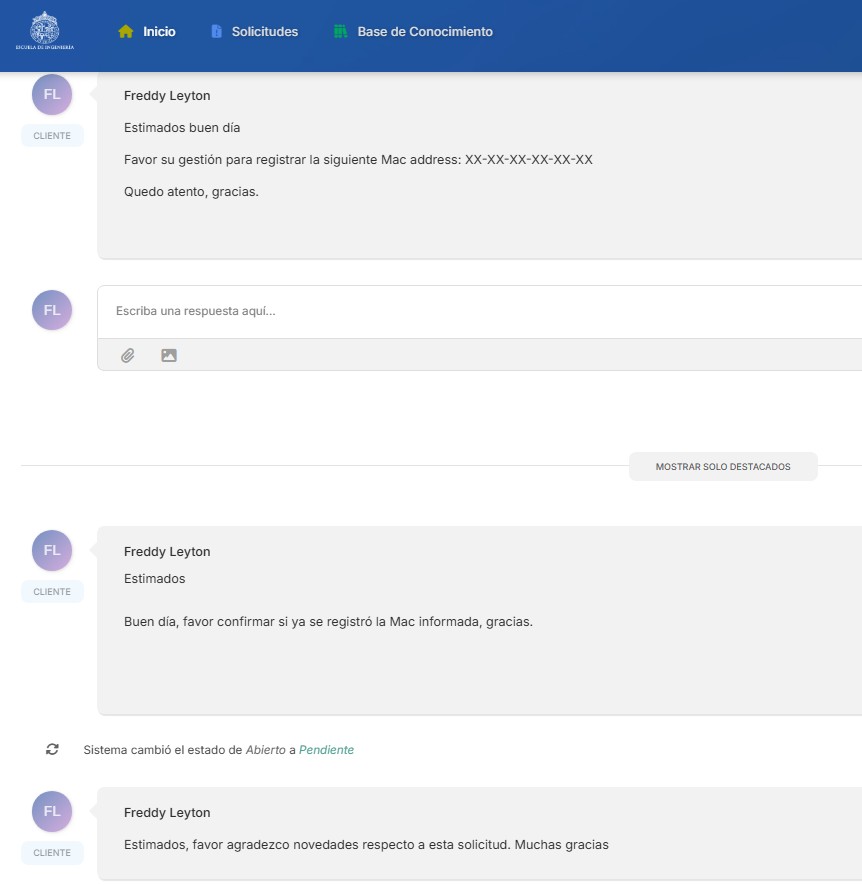 Luego de generar la solicitud, su requerimiento seguirá su curso y será atendido por algún agente de la Mesa o Administrador a cargo en los tiempos establecidos para cada categoría. .