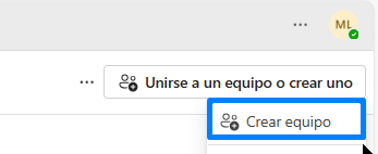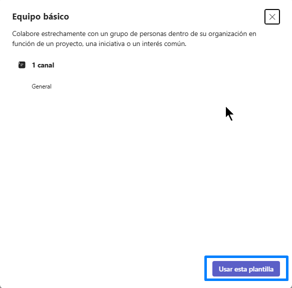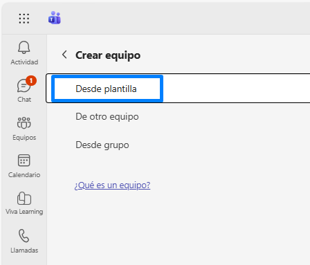 Seleccione Crear equipo, en esta ocasión seleccionamos Desde plantilla