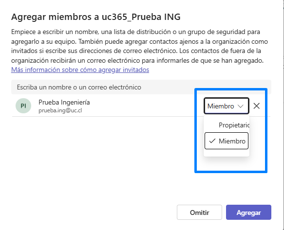 Para finalizar asigne el rol de propietario o miembro, según corresponda