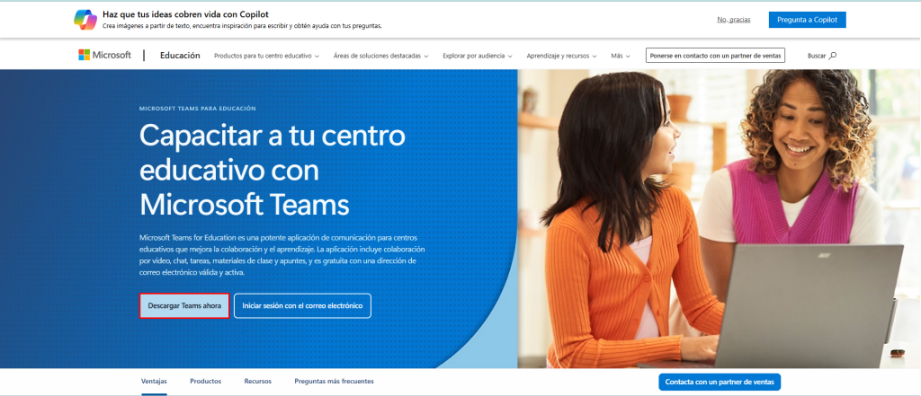 Acceder a la página de Microsoft: https://www.microsoft.com/es-es/education/products/teams y descargar la aplicación de Teams.