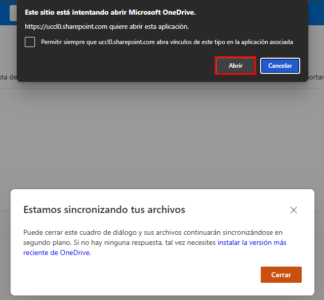 Debe permitir que se conecte con su Onedrive y esperar la sincronización, en caso de no tener conectado la cuenta con Onedrive le pedira iniciar sesión.